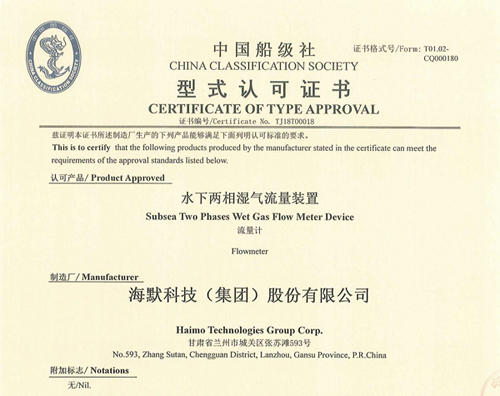 MKÌåÓý¿Æ¼¼Ë®ÏÂÁ½ÏàÊªÆøÁ÷Á¿×°ÖûñÖйú´¬¼¶É磨CCS£©ÐÍʽÈÏÖ¤Ö¤Êé