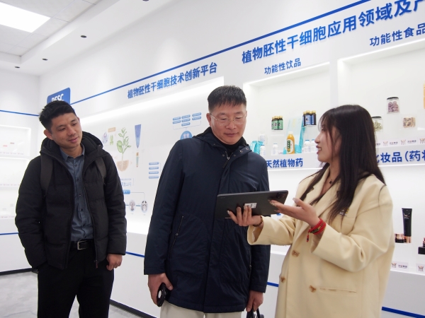 在财务中心认真人刘子豪的陪同下,来访团一行旅行了集团声誉墙与展厅,实地考察了必威官方首页官网集团的研发中心,先后旅行了植物胚性干细胞库、植物胚性干细胞种苗工程研究室、功效基因研究室、人工种子研究室、干细胞饮品研发实验室、医学磨练实验室、双PCR实验室等。