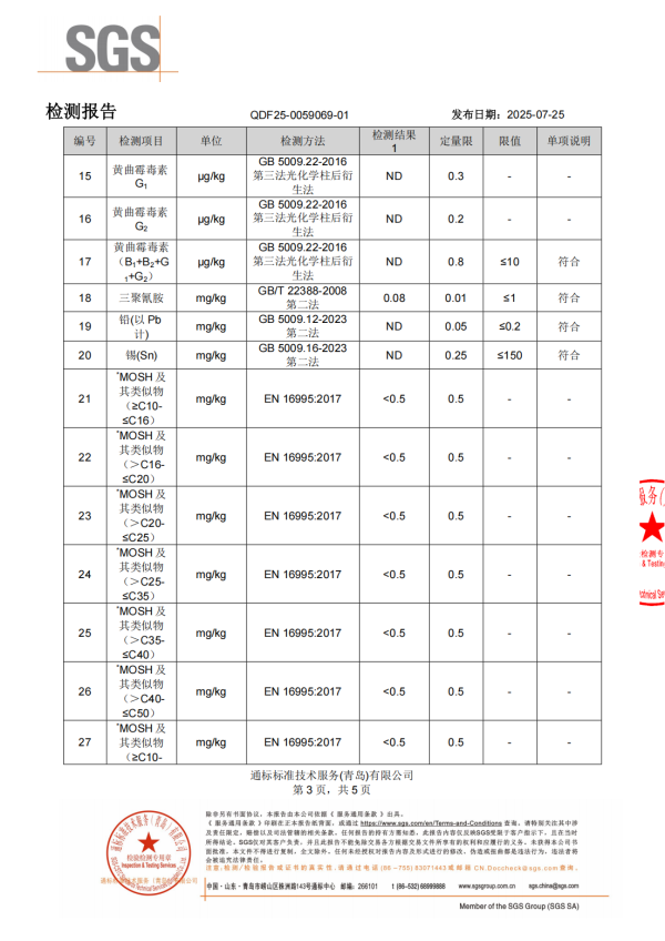 此次SGS针对雪莲作育物咖啡饮品的检测,肠杆菌科、大肠埃希氏菌、沙门氏菌、金黄色葡萄球菌等12项微生物检测所有及格!从泉源上杜绝了微生物污染的危害,清静感瞬间爆棚 。同时,重金属铅、锡、黄曲霉素、邻苯二甲酸二正丁酯(DBP)等多项有害物质均未检出,三聚氰胺、MOSH(矿物油)、MOAH(潜在致癌物)所有及格 。